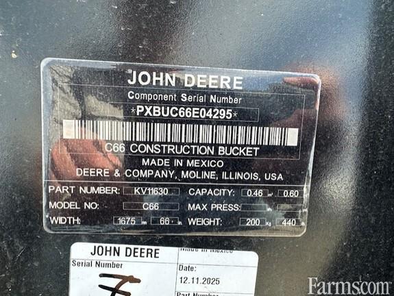 JOHN DEERE C66 CONSTRUCTION BUCKET, 2025, 66" working width, universal skid steer loader mounting, 16.2 cubic foot capacity, bolt on wear edge, low backplate improves cutting edge visibility.