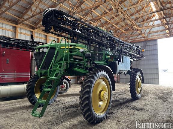 2009 JOHN DEERE 4730 SELF PROPELLED SPRAYER, 380/90R46 R1W, CLAMP ON DUALS, 100' BOOM, POLY PLUMBING, 800 GALLON POLY TANK, 2" QUICK FILL, 3 SENSOR BOOMTRAC, STD CAB, INSTR SEAT, STD RADIO, HALOGEN FIELD LIGHTING, OBA, HYDRAULIC TREAD ADJUST, TRACTION CONTROL, LH/RH FENCE ROW NOZZLES, AMS: 2600 DISPLAY W/SF1, SCP, SF3000