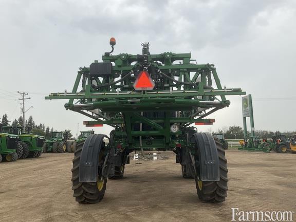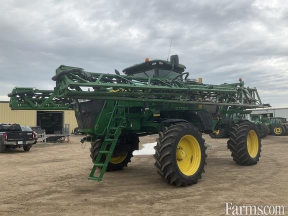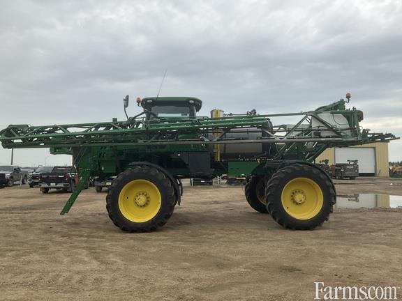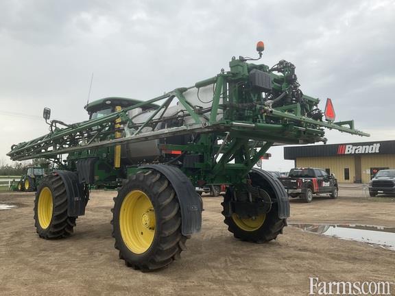 2017 John Deere R4038 sprayer, 120 ft. boom auto boom level, stainless steel tank, hydraulic tread adjust, traction control 20" nozzle spacing 650 LSW floats, dividers, IF 380/90R46 skinny's boom air purge system, 4 sets of nozzles