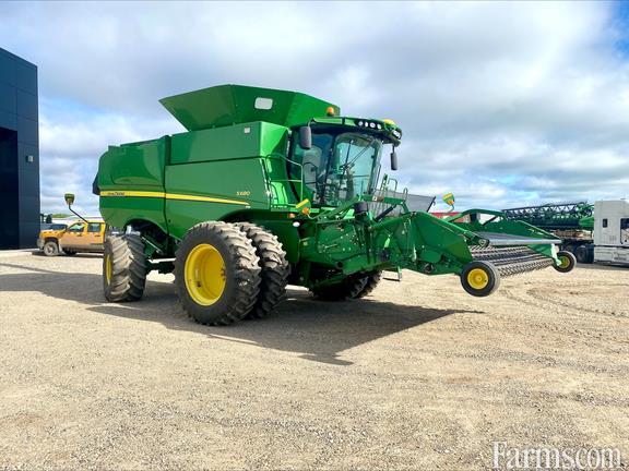 2012 John Deere S680 with: Premium Cab, HID Lighting Package and Header Extremity Lights, AutoTrac Ready with Harvest Monitor, Touchscreen GS3 CommandCenter, 7 In. Color Display, ProDrive Transmission with Harvest Smart Feedrate Control, 2-Wheel Drive, 110 kW Heavy Duty Tilt Cylinder, High Torque Fixed Speed Drive System with 3.15 In. (80 MM) Lift Cylinders, Small Wire Concave, S-Series Cleaning Shoe General Purpose Chaffer and Sieve with TouchSet, Variable Stream Rotor Configuration Regular Wear, 26 Ft. (7.9 M) Unloading Auger, Manual Adjust Vane Tailboard