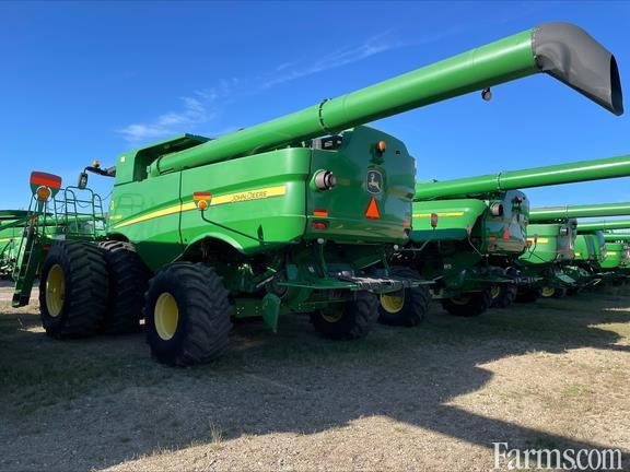 2012 JD S680, Small Grain, 2WD,Duals, Chopper, Yield Monitor, Contour Master (Lateral Tilt Feederhouse)Powercast Tailboard, Power Folding Bin Extension, Pickup Header, Canada (English)Premium Cab with Premium Radio, HID Lighting Package and Header Extremity Lights, AutoTrac Ready with Harvest Monitor, GreenStar 3 2630 Display (mounted on armrest)ProDrive Transmission with Harvest Smart Feedrate Control, 2-Wheel Drive, 110 kW Heavy Duty Tilt Cylinder, High Torque Fixed Speed Drive System with 3.15 In. (80 MM) Lift Cylinders, Small Wire Concave, S-Series Cleaning Shoe General Purpose Chaffer and Sieve with TouchSet, Variable Stream Rotor Configuration Regular Wear26 Ft. (7.9 M) Unloading Auger, PowerCast Powered Tailboard - In-Cab Operator Controlled Wind Compensation750/65R26 R1W 166A8 (Firestone or Michelin)650/85R38 R1W Duals 173A8 (Firestone or Goodyear)Engine Coolant Heater - 110 Volt (Not available for Export)Sectionalized Concave Cover Plates (Set of 3 covers with 4 pieces to make one complete cover) for Large Wire and Small Wire Concaves only.