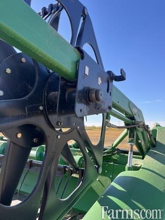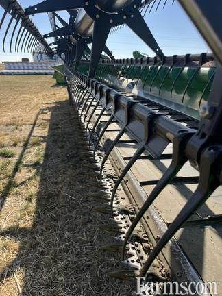 John Deere 635D; Poly Tine Pickup Reel, Top Crop Auger, Integrated Transport, Dual Knife Drive, Located In Killam