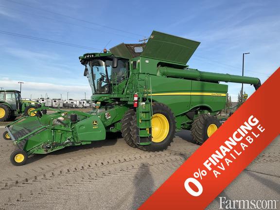 Small Tough Grains Package with suspended concaves, Premium Cab, Enhanced Air Seat, Premium Radio, Premium LED Lighting, AutoTrac Ready, 7" GS3 Touchscreen, Interactive Combine Adjustment, Touch Set, VisionTrak, & Harvest Smart, ProDrive Transmission, Contour master Feederhouse with Fore Aft Tilt, Power Folding Grain Tank Covers, 26 Ft. Unloading Auger, Premium Advanced PowerCast powered tailboard & 580/85R42 R1W Duals with 750/65R26 rears. No pickup included, but pickups are available.