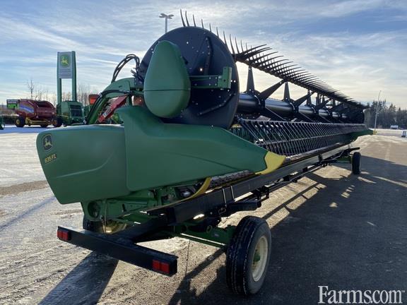2018 John Deere 635FD great shape - 35' flex draper - flip over reel - Dual knife drive - poly tine pickup reel - cut height skid shoe - top auger & Horst 4 wheel steer transport