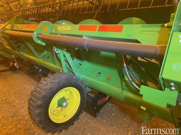Platform size: 50 Feet, Specifications: Hinged Frame Rigid Cutterbar; Double Knife Drive; Split Reel; Flip Over Kit; Vertical End Knife; 18" Upper Cross Auger; Header Height Sensing; Wing Leveling; Center Canvas Seal Kit; Spare Knife; Cutterbar Poly; Gaug