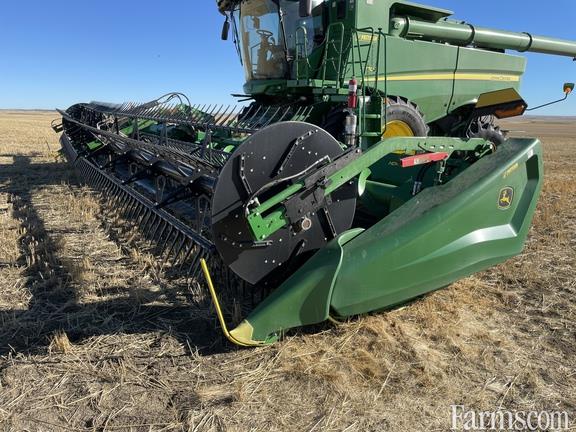 40' Hinged Frame Flex Cutterbar, Double Knife Drive, Split Reel w/ Flip Over Kit, 18" Fingered Upper Cross Auger, Header Height Sensing, Center Canvas Seal Kit, Poly Skid Shoes w/Cutterbar Poly, Spare Knife, S Series Combine Adapter, Contact Your Local Pattison Ag Location For Available Date.