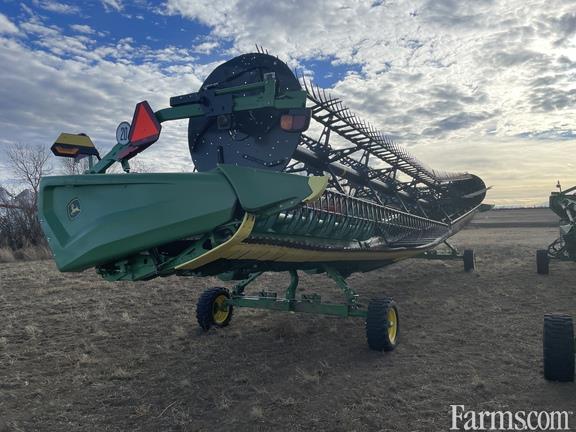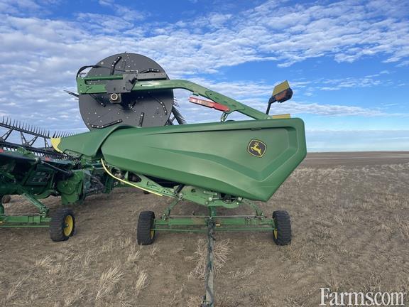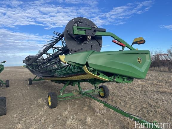 Options: Flip Over Reel, Platform Kind: Flex/Draper, Platform size: 45 Feet, Specifications: 45' Flex Draper; Split Reel w/Flip Over Reel & Plastic Fingers; 18" Cross Auger; Header Height Sensing; Integrated Transport; Gauge Wheels; Poly Skid Shoes; S
