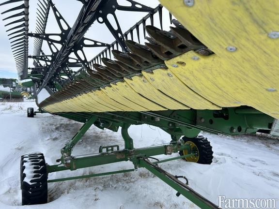 Specifications: 45 Feet; Flex/Draper; Flip Over Reel; 45' Flex-Draper Header w/ Double Knife Drive; Split Reel w/ Fore/Aft & Flip Over Kit; 12" Fingered Upper Cross Auger; Header Height Sensing; Poly Skid Shoes; Integrated Transport; Cutterbar Poly; G
