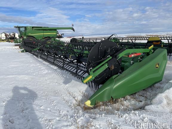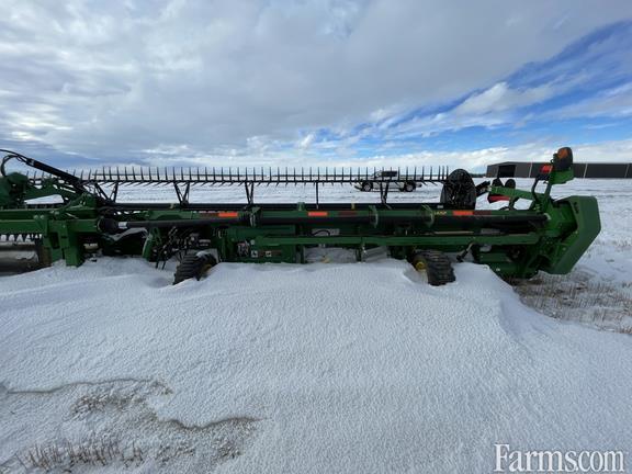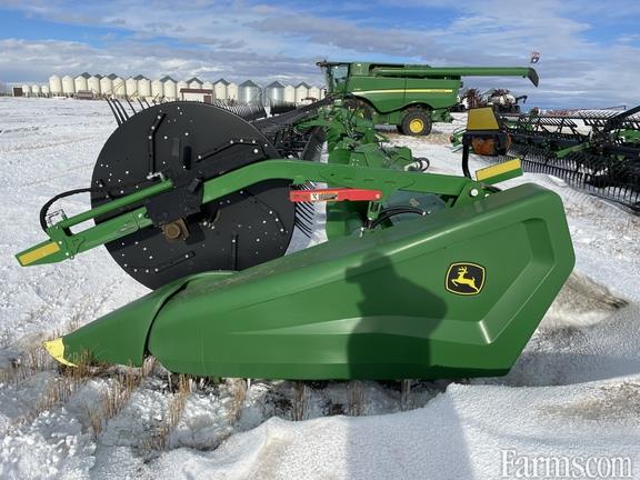 45' Flex-draper w/ Double Knife Drive, Split Reel w/ Fore/aft & Flip Over Kit, 18" Upper Cross Auger, Header Height Sensing Rigid Mode, Poly Skid Shoes, Cutterbar Poly, Integrated Transport, Gauge Wheels, John Deere STS/S Series Adapter, Contact Your Local Pattison Ag Location For Available Date.
