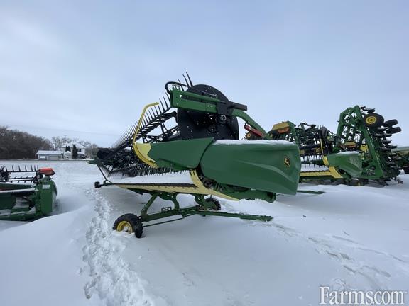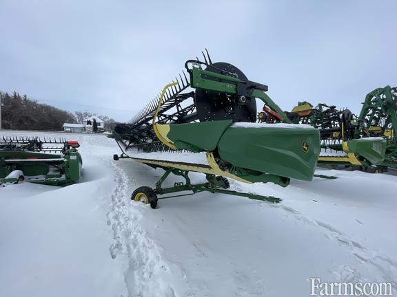 Options: Flip Over Reel, Platform Kind: Flex/Draper, Platform size: 45 Feet, Specifications: 45' Hinged Frame Rigid Cutterbar w/ Double Knife Drive; Split Reel w/ Fore/Aft & Flip Over Kit; 18" Fingered Upper Cross Auger; Header Height Sensing w/ Poly