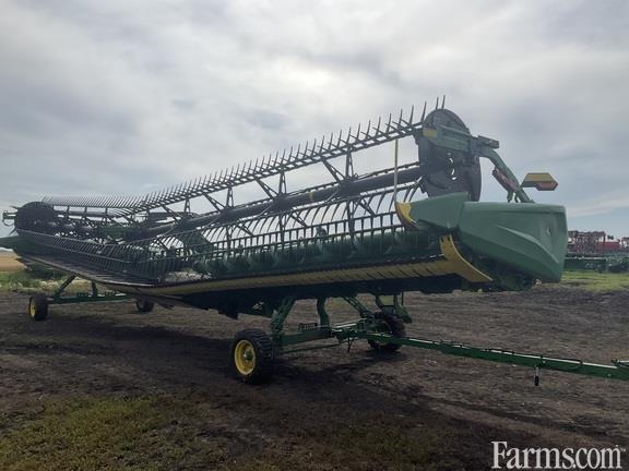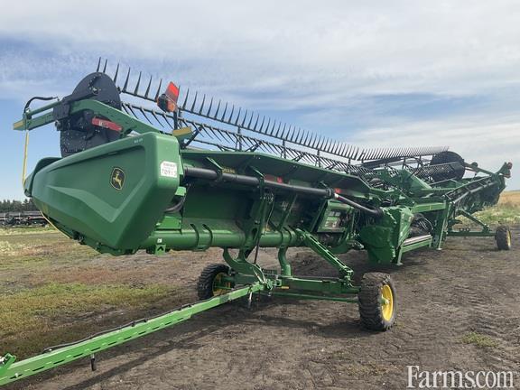 2023 John Deere HD45F 45 foot flex draper platform flip over pickup reel back sheet extensions integrated John Deere transport