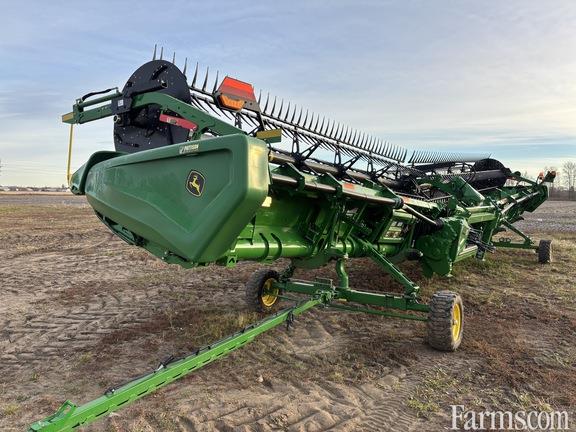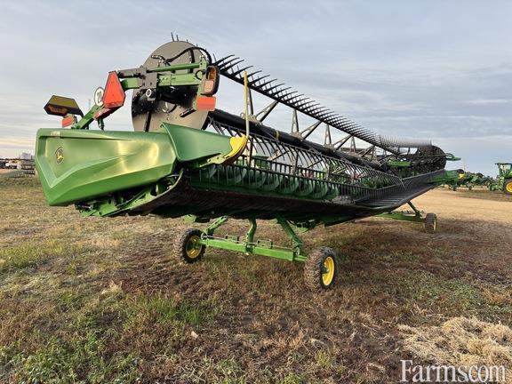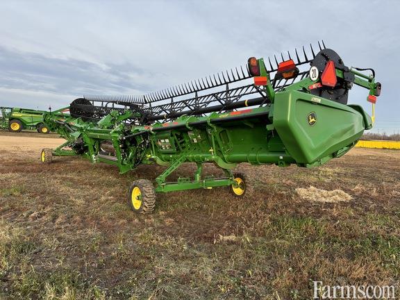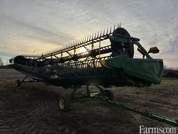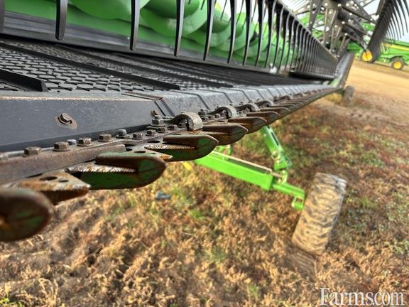 Options: Flip Over Reel, Platform Kind: Flex/Draper, Platform size: 45 Feet, Specifications: 45' Hindged Draper; Double Knife Drive; Split Reel w/Flip Over Kit; 18" Fingered Cross Auger; Wing Leveling; Integrated Transport; Poly Skid Shoes; Center Canvas
