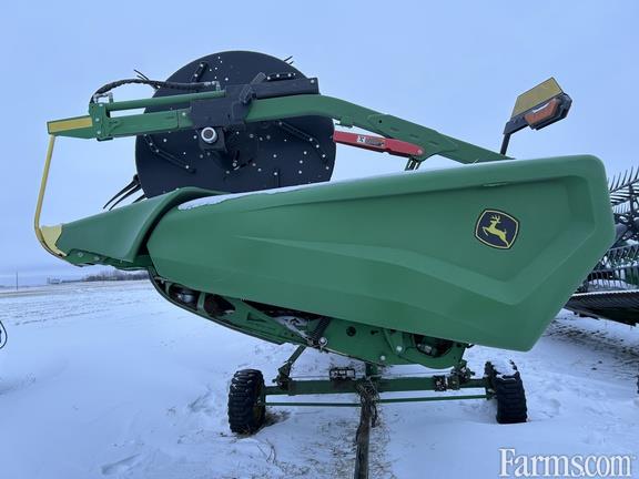 Options: Flip Over Reel, Platform Kind: Flex/Draper, Platform size: 45 Feet, Specifications: 45' Hinged Frame Flex Cutterbar, Double Knife Drive; Split Reel w/ Fore/aft & Flip Over Kit; 12" Fingered Upper Cross Auger; Wing Leveling, Poly Skid Shoes, S