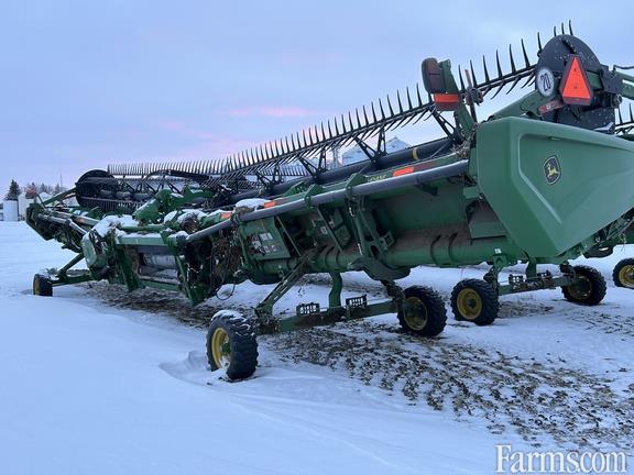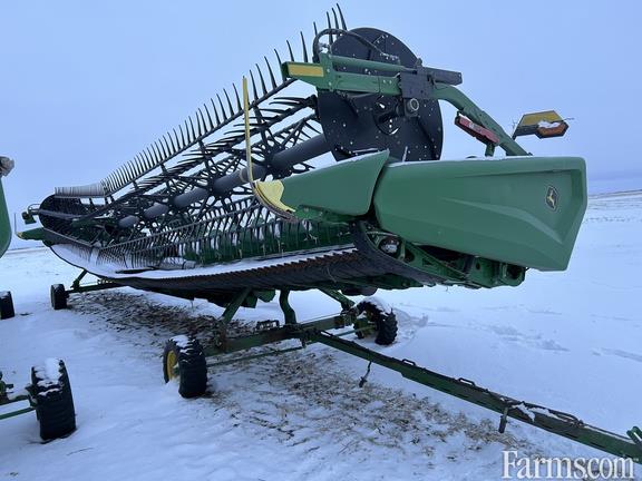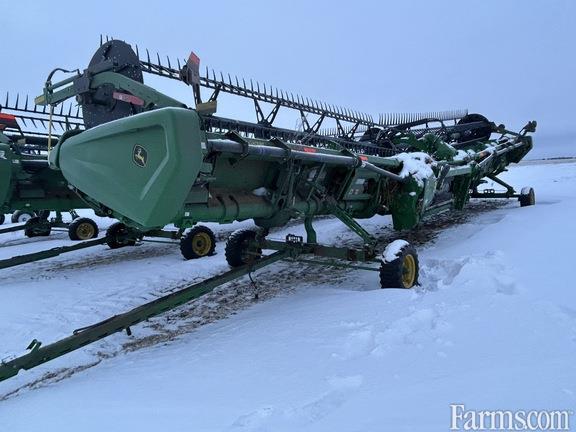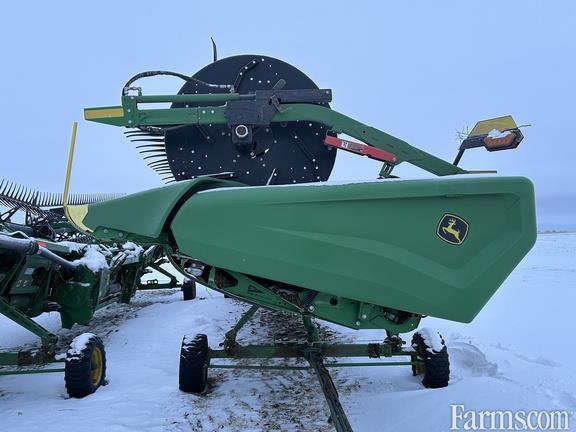 Options: Flip Over Reel, Platform Kind: Flex/Draper, Platform size: 45 Feet, Specifications: 45' Hinged Frame Flex Cutterbar, Double Knife Drive; Split Reel w/ Fore/aft, Flip Over Kit; 12" Fingered Upper Cross Auger; Wing Leveling, Poly Skid Shoes, Spare