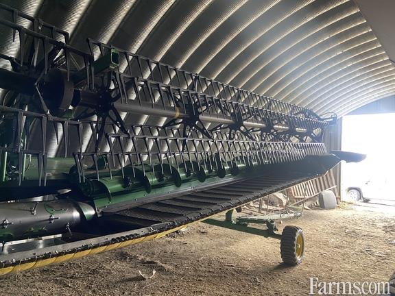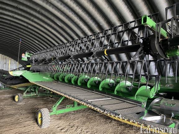 45' Hinged Frame Rigid Cutterbar w/ Double Knife Drive, Split Reel w/ Fore/Aft & Vertical End Knife, 18" Fingered Upper Cross Auger, Header Height Sensing, Poly Skid Shoes, Center Canvas Seal Kit, Spare Knife, Integrated Transport, Cutterbar Poly, Backsheet Extensions, Vertical Side Knife Ready, Standard Skid Shoes, Transport Hitch Extension, Short Poly Dividers, John Deere Combine Adapter For S-Series Combines, Contact Your Local Pattison Ag Location For Available Date.