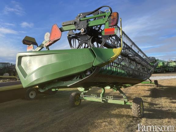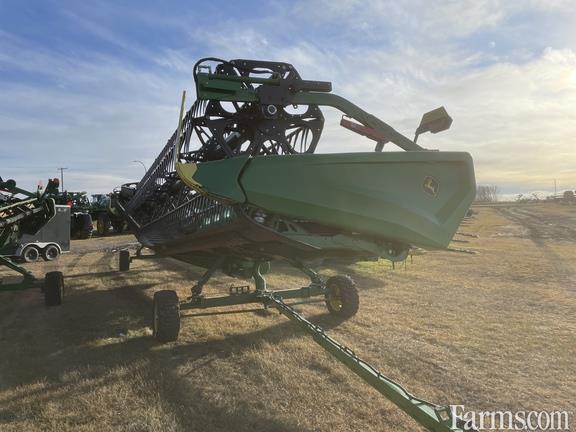 Specifications: 45 Feet; Draper; Hinged Frame Rigid Cutterbar C/w Double Knife Drive; Split Reel C/w Fore/Aft; 18" Fingered Upper Cross Auger; Cutterbar / Skid Plate High Wear Poly; Center Canvas Seal Kit; Spare Knives; Integrated Transport C/w Carlstar 2