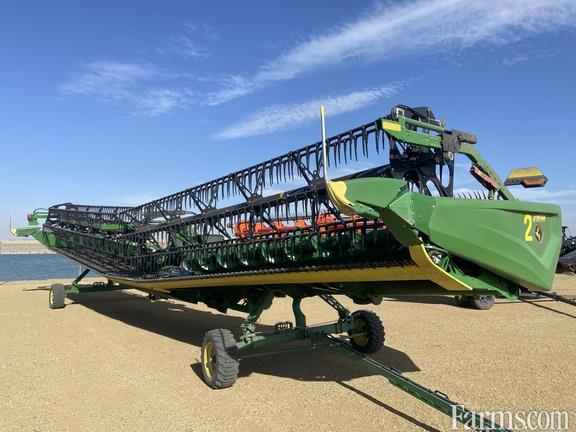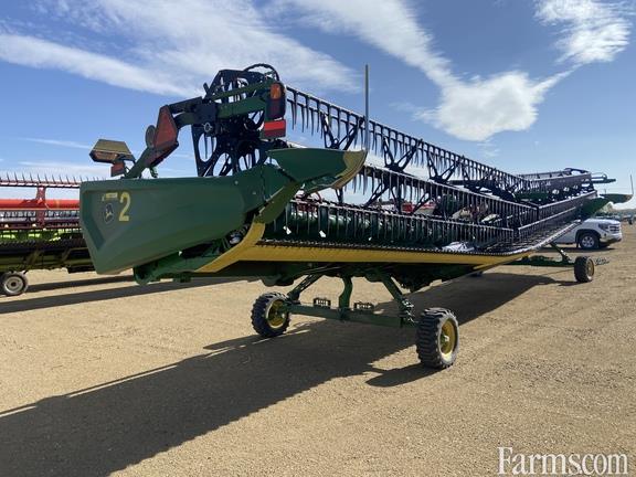 Platform Kind: Rigid, Platform size: 45 Feet, Specifications: Width 45'; Hinged Frame Rigid Cutterbar w/ Double Knife Drive; Split Reel w/ Fore/aft; Fingered Upper Cross Auger; Crop Catcher w/ Header Height Sensing & Poly Skid Shoes & Center Canva
