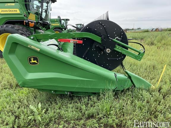 50' Hinged Frame Flex Cutterbar w/ Double Knife Drive, Split Reel w/ Fore/aft & Flip Over Kit, 12" Fingered Upper Cross Auger, Header Height Sensing, Poly Skid Shoes, Spare Knife, Gauge Wheels, High Wear Cutterbar Poly, John Deere X Series Combine Adapter, Contact Your Local Pattison Ag Location For Available Date.