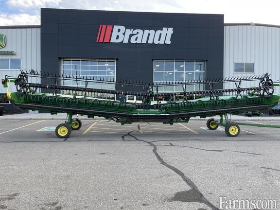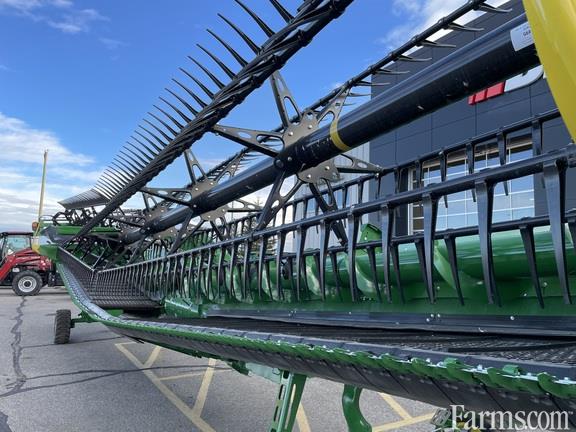 John Deere HDR 40, with Cam Reel, Gauge Wheels Integrated Transport, High Wear Skid Shoes, Fingered Top Auger, Coarse Tooth Short High Wear Guards, Coarse Tooth Spare Knife, Back sheet Extensions, Belt Protection System, Center Crop Flow Divider, Center Section Seal Kit.