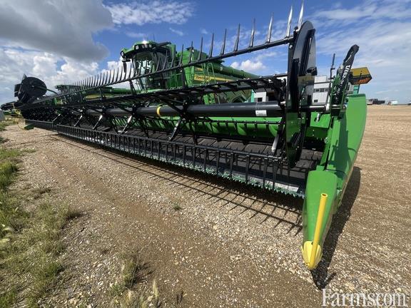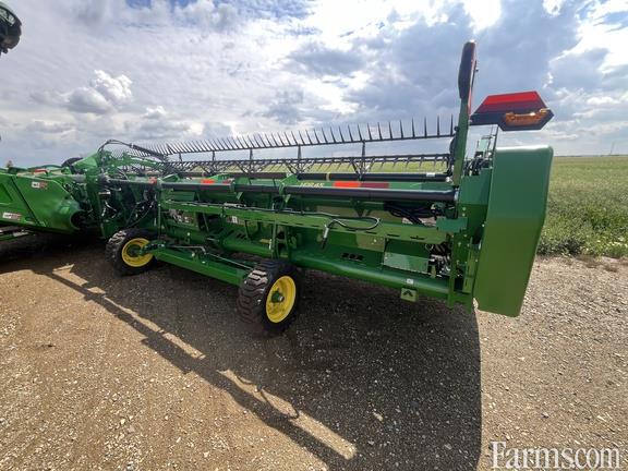 Options: Flip Over Reel, Platform Kind: Flex/Draper, Platform size: 45 Feet, Specifications: 45' Flex-draper, Hinged Frame Rigid Cutterbar, Double Knife Drive; Split, Fore/aft, Flip Over Kit; Header Height Sensing, Wing Leveling, Poly Skid Shoes, Center C