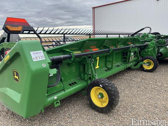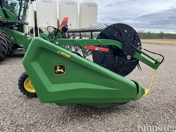 Specifications: 50 Feet; Draper; Flip Over Reel; 50' Hinged Frame Flex Cutterbar w/ Double Knife Drive; Split Reel w/ Flip Over Kit; Fingered Upper Cross Auger; Header Height Sensing; Poly Skid Shoes; Center Canvas Seal Kit; Gauge Wheels; High Wear Cutter