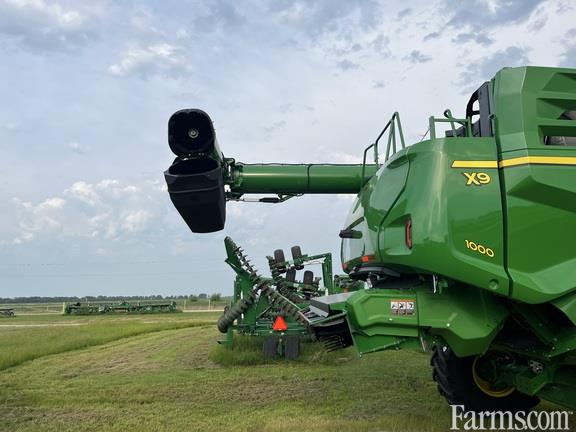 AVAILABLE SUMMER, JOHN DEERE X9 1000 COMBINE, 2025, 2 speed POWER REAR WHEEL DRIVE, JD 13.6 LITER, 6 cylinder diesel engine, 550HP, 604hp during unloading power boost, 110V coolant heater, Ultimate cab, Signature Edition, ultimate visibility, ultimate suspension and ultimate technology, JDLink MTG, Active II leather heated air suspension seat, leather buddy seat, HVAC, Climatrac automatic cab temp controls, E/H header and separator controls, premium header controls, 3 position header height resume, reel resume, dial-a- speed, active header float & height sensing, 6.5" touch screen AM/FM XM ready radio, refrigerator, LED lighting and extremity lights, LED beacon lights, 3 cameras, fire extinguisher package, dual G5 Plus CommandCenter 12.8" displays with permanent licenses for AutoTrac steering, RowSense, Data Sync, Over Air updates & Remote Display Access, renewable G5 Advanced license for Turn Automation, AutoPath, Data Share & Machine Sync ready, includes Starfire SF-1 ready global position receiver (accuracy subscriptions required), combine advisor package, ActiveYield plus moisture & yield sensors, active terrain adjust, Vision Trak, interactive touch set combine adjustments, ProDrive XL transmission (25 mph) w/Harvest smart, contour master variable speed feeder house w/reverser, 3.5" lift cylinders, dual tilt cylinders, hydraulic fore & aft tilt, ONLY compatible with 2021 and newer front end equipment, dust extraction system, DUAL Tristream extended wear rotors with Kondex Revolution extended wear round bar concaves, extended wear grain handling system, Dyna-flo XL plus deep tooth touch set chaffer and sieve, clean grain auger & fan bottom shields, 420 bu grain tank plus Demco tank extension, power folding tank covers, extra full grain tank sensor, 31' extended wear power folding unloading auger, adjustable auger spout, wide spread 2 speed fine cut chopper, advanced PowerCast tailboard with wind compensation & in cab controls, complete 36" rubber track drive system, Firestone VF750/65R26 R-1W steering tires. FULL JD FACTORY WARRANTY UNTIL 08-23-2026. JD EXTENDED ENGINE/POWERTRAIN WARRANTY UNTIL 08-22-2028 OR 1,500 HOURS ($500 deductible).
