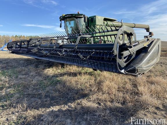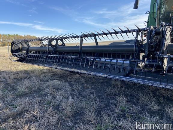 Options: Flip Over Reel, Platform Kind: Flex/Draper, Platform size: 45 Feet, Specifications: 45' Flex-Draper w/ Double Knife Drive; Split Reel w/ Fore/Aft & Flip Over Kit & Lodged Crop Finger Kit; 12" Upper Cross Auger; Header Height Sensing; Poly