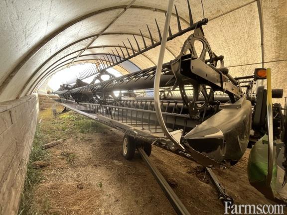 Options: Flip Over Reel, Platform Kind: Flex/Draper, Platform size: 35 Feet, Specifications: 35' Flex-Draper w/Hinged Frame Rigid Cutterbar; Single Knife Drive; Split Reel w/Fore/Aft; 12" Upper Cross Auger; Center Canvas Seal Kit; Integrated Transport; He