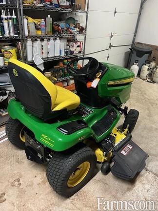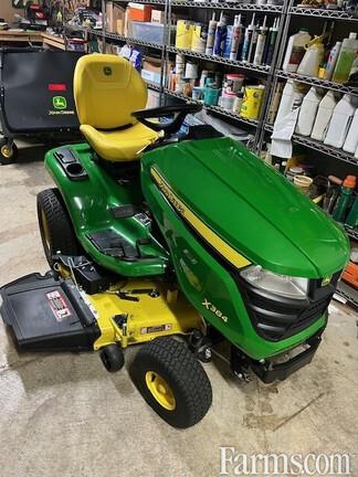 JOHN DEERE X384/48 ALL WHEEL STEER LAWN TRACTOR, 2022, with collection system, 23hp, Kawasaki, gas, v-twin, air cooled engine, 48" Accel Deep side discharge mower deck, AWS yields 18" uncut circle, deluxe comfort seat,