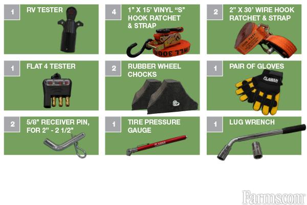 Don’t be caught without the tools, parts, and other essentials you’ll need on the road. This collection offers a lug wrench, pressure gauge, pins, ratchets, gloves and more.