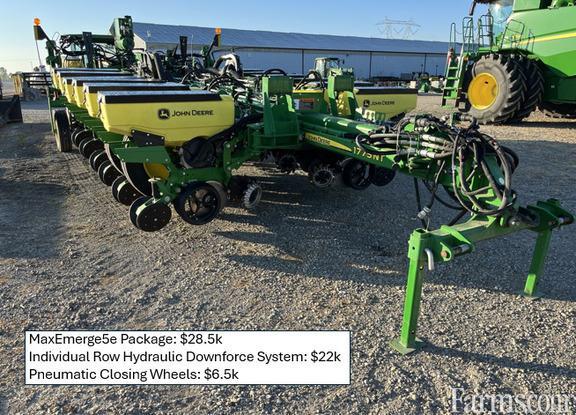 16Row Spacing: 30 inFrame: Flex FoldMetering System: VacuumHopper: 3.0 BushelRow Command: YesElectric DriveMaxEmerge 5e PackageConnect Mobile ReadyJDLink Connect Upgrade 1 Year plus JDLink Access + RDA 5 YearTwo Point HitchElectric Drive with Tractor Power Generation - 8030 and 8R Series TractorsElectric Drive MaxEmerge 5e MeterTru-Vee Openers with Single Walking Spoked Gauge WheelsSteel Scrapers3.0 Bushel Seed Hopper with MaxEmerge 5e MeterHydraulic Down Force SystemRubber Tire Closing Wheels - Pneumatically ControlledSeedStar 4 HP Monitor System for MaxEmerge 5e with Settings Manager, Mobile Row Unit Runoff and Easy FoldRegular Seed Tube with AccuCount SensorRegular Parallel ArmsRear Trailer HitchSugar Beet Seed Metering Disk