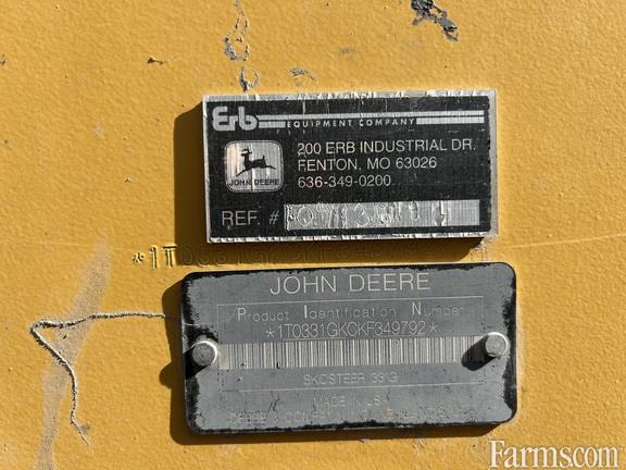 JOHN DEERE 331G COMPACT TRACK LOADER, 2019, CAB, HVAC, 91hp, 4 cylinder, turbo diesel engine, 110V coolant heater, intake air pre-cleaner, standard flow hydraulics (23 gpm), 2 speed (7.8 mph), switchable E/H (ISO/H pattern) hand controls, joystick performance package, cloth heated air suspension seat, keyless sealed switch module with programmable security codes, rear view camera, AM/FM radio, reversing hydraulic cooling fan drive, HD louvered rear grille, self level up, boom ride control, footrest with floor mat, standard lighting package, auxiliary hydraulic outlets, power quick tatch for bucket, 84" bucket, 17.7" rubber tracks, 3100# rated op. capacity, 8850# tipping load, 11,900# normal operating weight.
