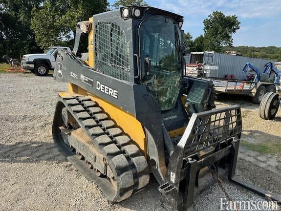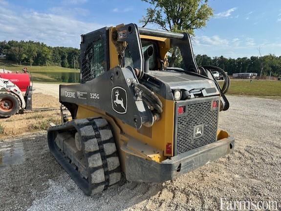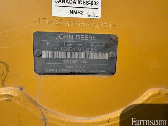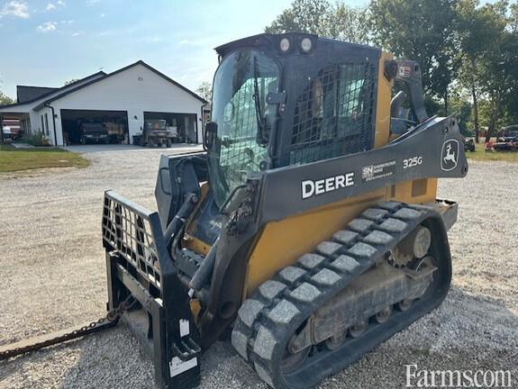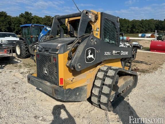 JOHN DEERE 325G COMPACT TRACK LOADER, 2021, 74hp, 4 cylinder, turbo diesel engine, 110V coolant heater, JDLink MTG, CAB, HVAC, high flow hydraulics (27 gpm), 2 speed (8.2 mph), E/H switchable controls (ISO/H pattern), joystick performance package, hydraulic reversing cooling fan drive, cloth heated air suspension seat, keyless sealed switch module with programable security codes, premium LED lighting package, AM/FM radio, rear view camera, self level up, boom ride control, electric power quick tatch for bucket, foot rest & floor mat, auxiliary hydraulic outlets, HD rear bumper, 15.8" rubber tracks, 78" tooth bucket, 2590# rated op. capacity, 7400# tipping load, 9,500# normal operating weight. PICTURED WITH PALLET FORKS ATTACHED WHICH ARE "NOT" INCLUDED.