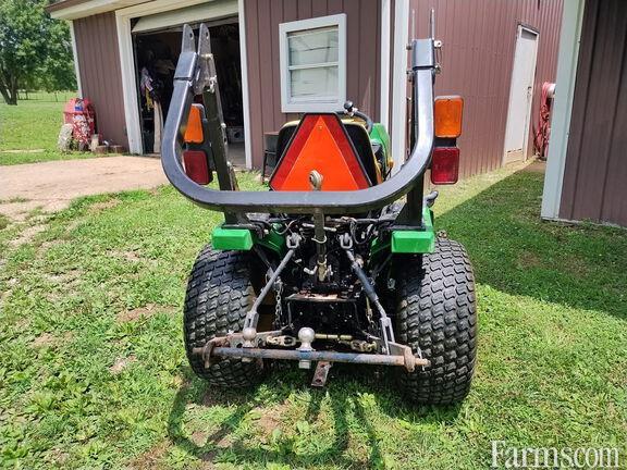 JOHN DEERE 4010 MFWD COMPACT TRACTOR WITH MOWER DECK, 2005, 18.5hp, 3 cylinder liquid cooled diesel engine, 4 wheel drive plus rear differential lock, dual range Foot Controlled Hydrostatic Transmission, Open Station with 2 post folding ROPS, cruise control, power steering, deluxe seat with seat belt, 2 function joystick hydraulic controls for loader with mid mount ISO couplers (NO LOADER), Cat 1 three point hitch, mid PTO for mower, independent 540 rpm rear PTO, 29x12.50-15, R-3 (turf tread) rear tires, 20x8.0-10 R-3 front tires.