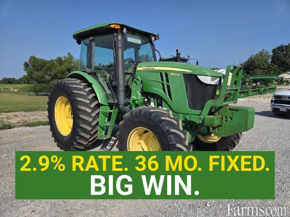 JOHN DEERE 6140D MFWD, UTILITY TRACTOR, 2013, 140hp, 4.5 liter, 4 cylinder turbo diesel engine, 4 wheel drive plus rear differential lock, ComfortGard cab, HVAC, cloth air suspension seat, folding buddy seat, full access cab doors left & right, AM/FM radio, tilt /telescope steering column, foot throttle, deluxe cab corner exhaust, 9F/9R, left hand electo-hydraulic power reverser transmission, wet traction & PTO clutches, independent live 540 or 1000 rear PTO, 3 rear SCV hydraulic remotes with ISO outlets,