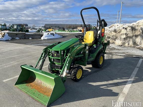 low hour one owner 1025R compact tractor, R4 tires, hydrostatic transmission, MFWD, front end loader with bucket, rear mounted 260 backhoe with digging bucket and mechanical thumb