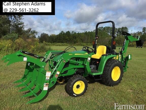 NEW John Deere 3025E tractor with 300E loader, 370B backhoe and AV20H grapple (bucket included)