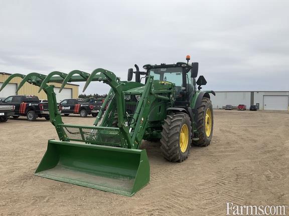 2023 John Deere 6R 175 MFWD, complete with John Deere 680R loader and grapple, MFWD suspension IVT transmission, guidance-ready no receiver Rear 540/1000 PTO: 540/1000, 520/85R42 rear singles 480/70R30 front, loader ready