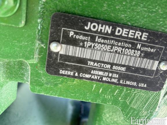 2024 John Deere 5050E MFWD tractor, open station, TSS trans., 1 rear remote, 540 PTO, 16.9-24 rear tires, 12.5/80-18 front tires, 520M loader and bucket. Basic warranty until July 27, 2025 and Limited basic warranty until July 27, 2028 or 2,000 hours. Never been used.