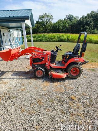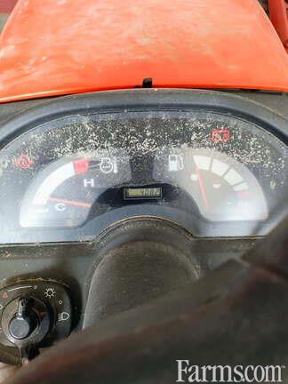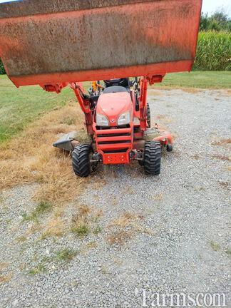 WITH: KUBOTA LA243 QUICK TATCH FRONT LOADER, mid hydraulic couplers, loader mast mounted 2 function joystick hydraulic valve, 48" pin on materials bucket,