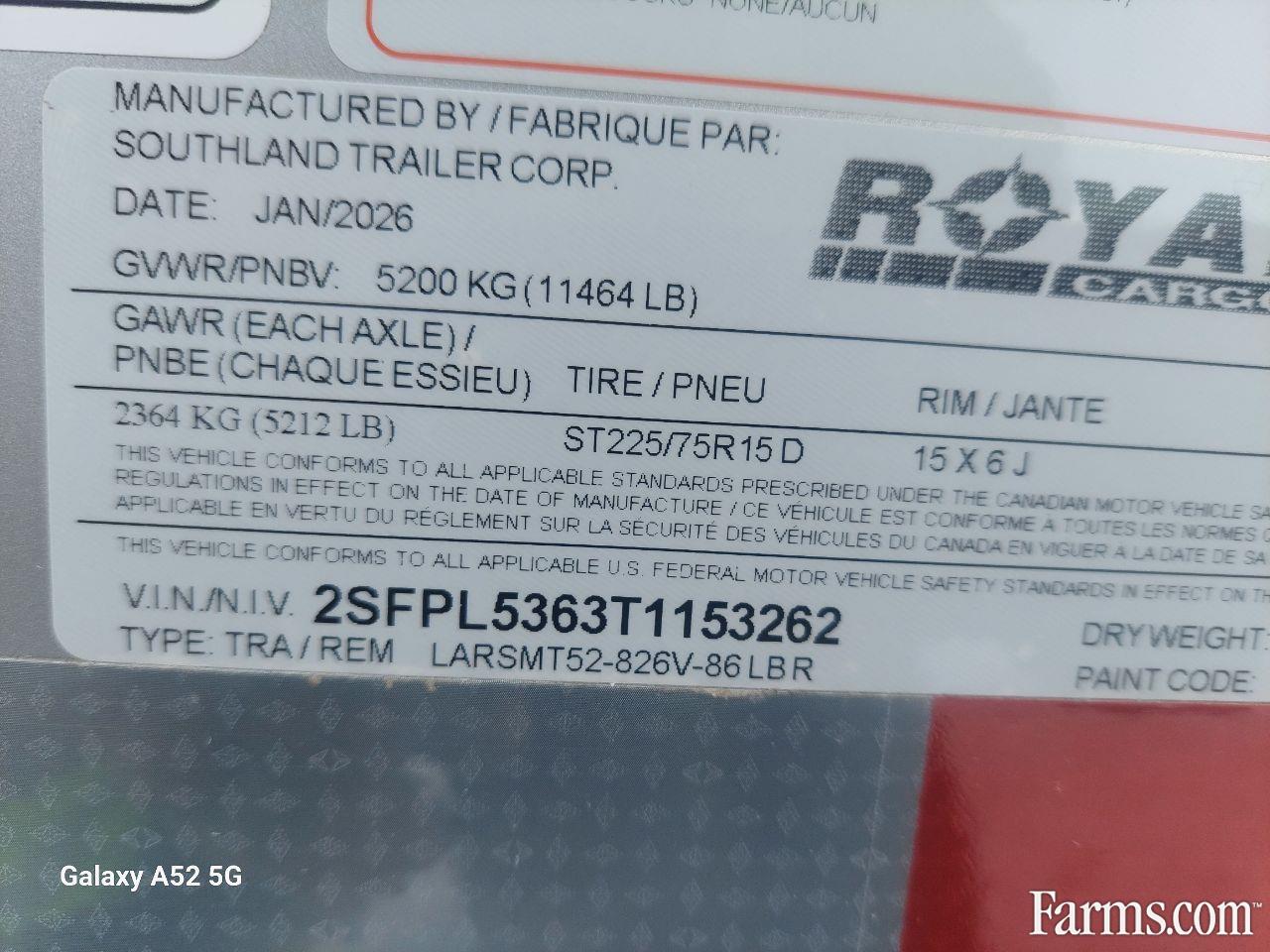 Axle Capacity: 5,200 lb