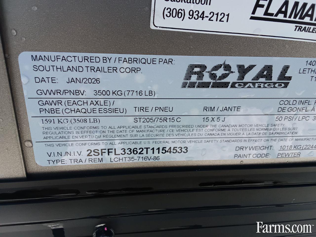 Axle Capacity: 3,500 lb