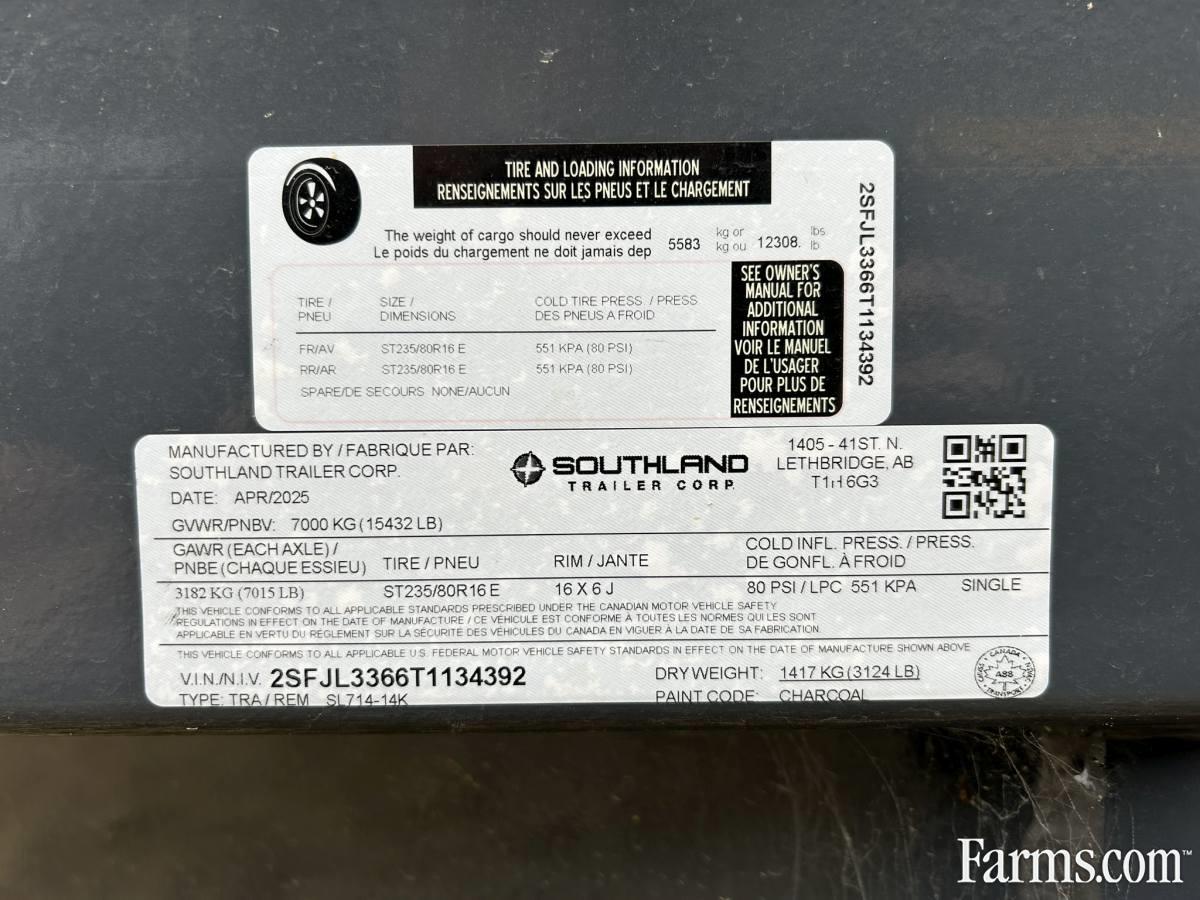 2026 Southland 14K 7' x 14' Dump Trailer
