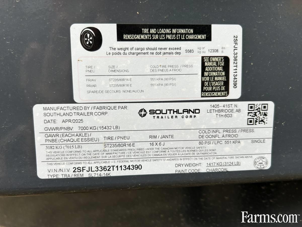 2026 Southland 14K 7' x 14' Dump Trailer