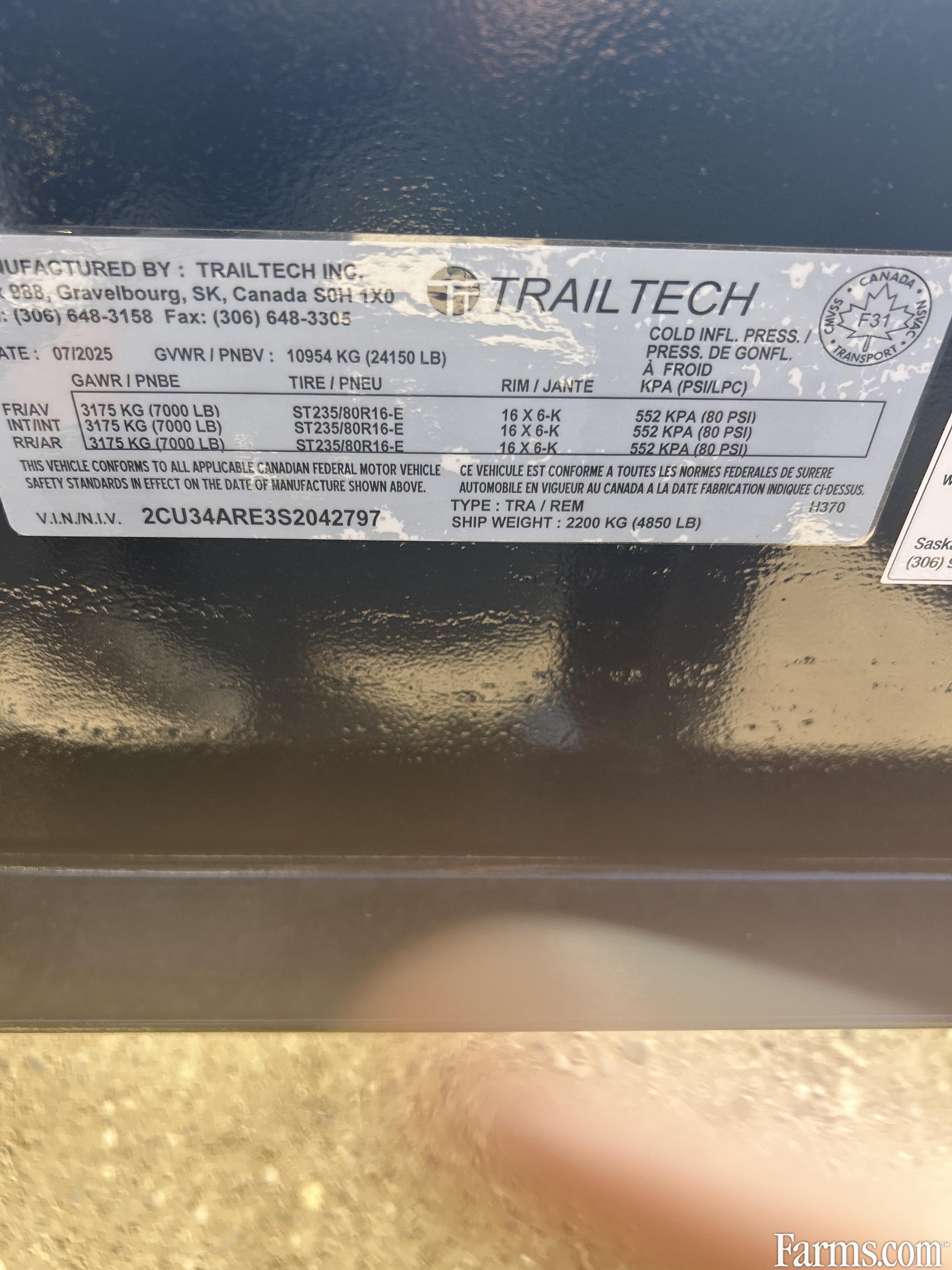 2025 Trailtech H370 8'6" x 24' Deckover Trailer