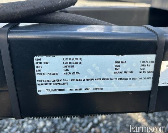 **Contact AgPro Cartersville at 770*387*0340 for more info & availability**Linx Manufacturing 7'x18' equipment trailer with dual 3,500 lb axles / GVWR: 7,000 lbs / Load Capacity: 4,715 lbs / 5,000 lb jack capacity / 10 ply tires / LED lighting / Removeable side rails**Prcing specific to stock #: 44007266**